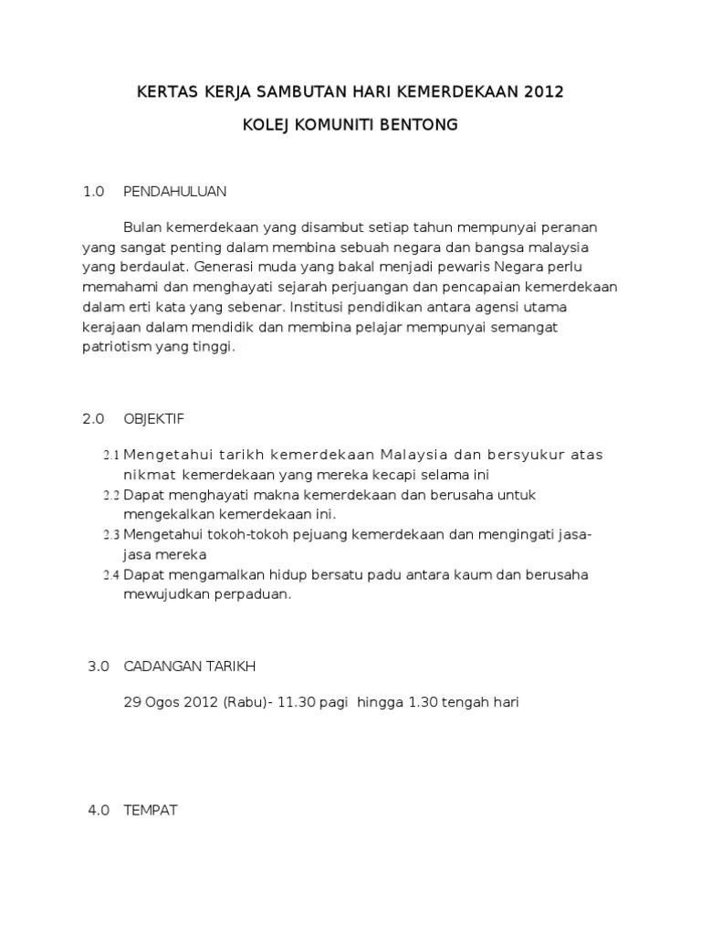 Kertas kerja sambutan hari kebangsaan 2020 flip ebook pages 1 12 anyflip anyflip. Kertas kerja sambutan bulan kemerdekaanperingkat sekolah 20181.pengenalanisu / permasalahan yang berlaku ialah kurangnya penghayatan erti kemerdekaan . 1.0pendahuluan hari kemerdekaan merupakan hari kebesaran negara yang perlu disambut dan dihayati oleh semua rakyat yan. Tahun ni saya dapat job baru, first time dilantik sebagai penyelaras . 1.0 pendahuluansambutan hari kemerdekaan merupakan satu aktiviti tahunan yangdijalankan pada . Sudah menjadi budaya di setiap sekolah apabila tibanya bulan ogos pastinya rancangan dan program berkaitan sambutan kemerdekaan negara akan .